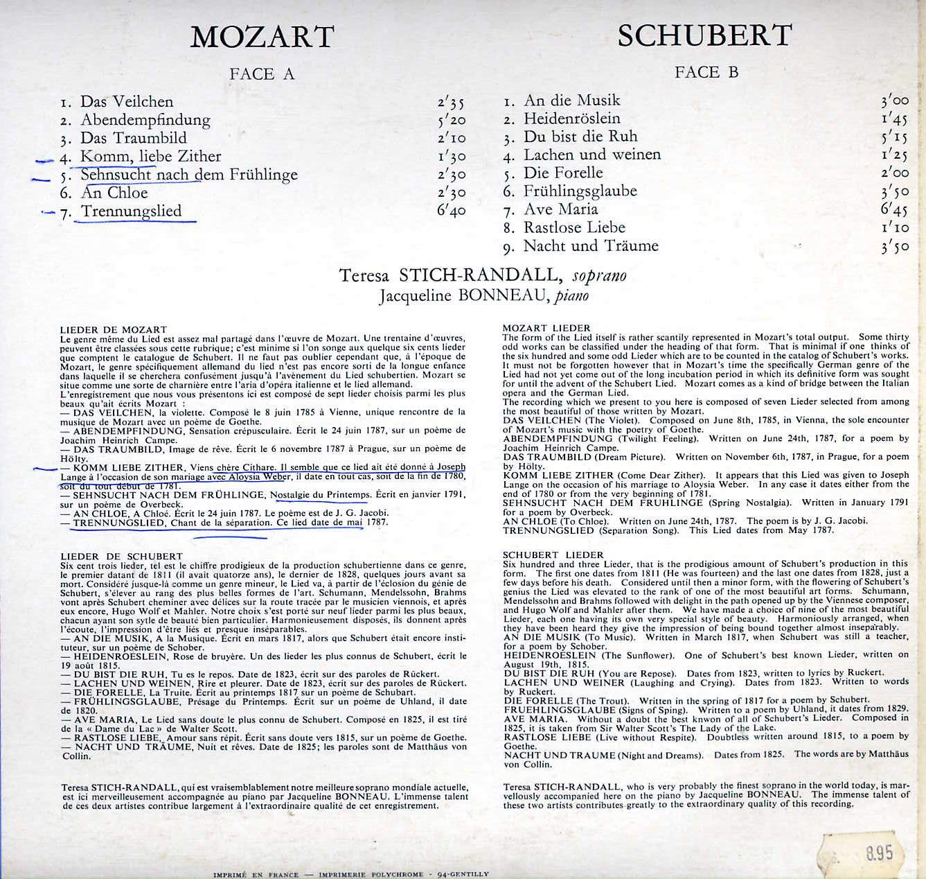 Schubert Mozart: Lieder Pubblicato il 04/06/2011 da Borellogio Teresa Stich-Randall soprano Jaqueline Bonneau piano Scarica qui i lieder di Schubert, Mozart